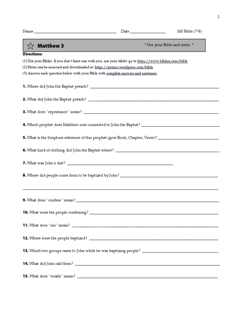 Matthew 3 Questions Pdf John The Baptist Christianity