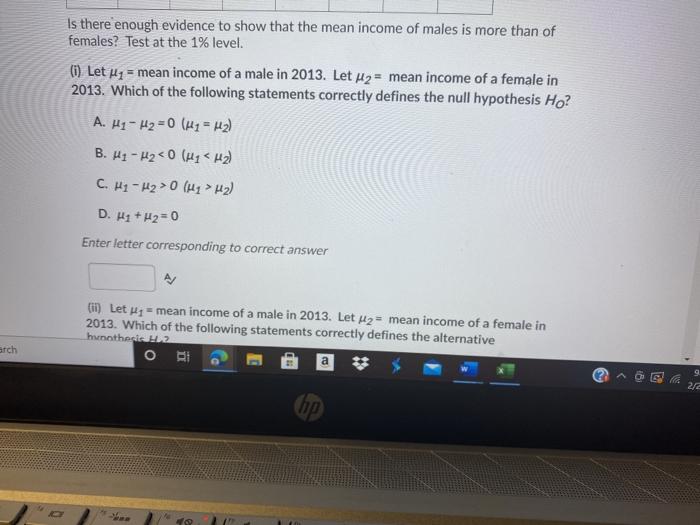 Solved The Income Of Males In Each State Of The United Chegg Com